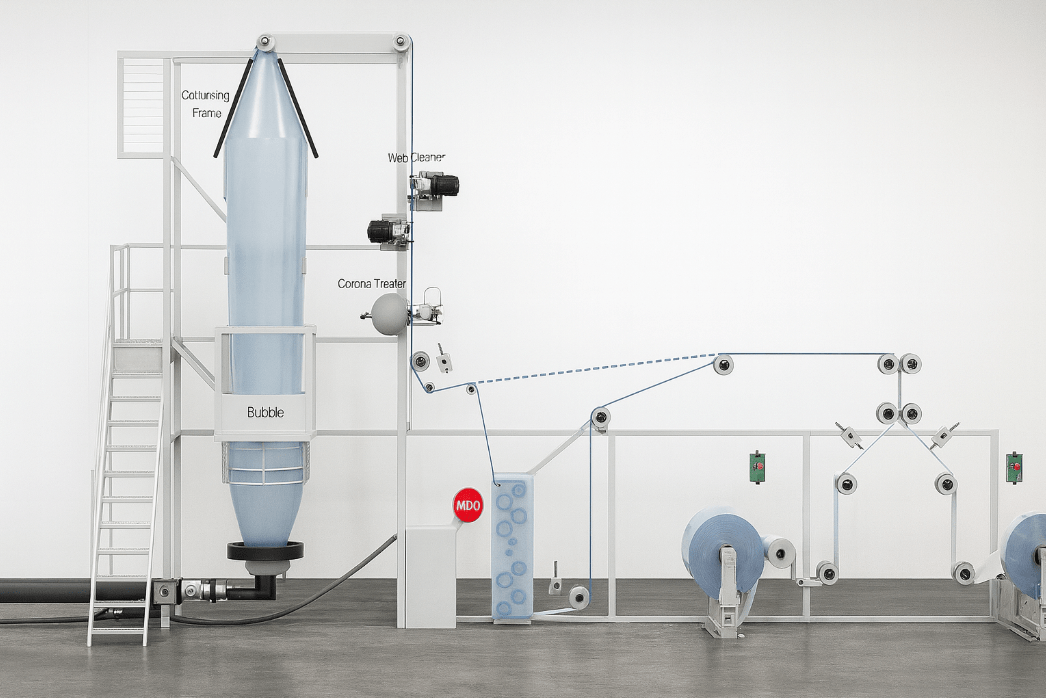 MDO can be in different positions including at the ‘take-off’ position of blown film.