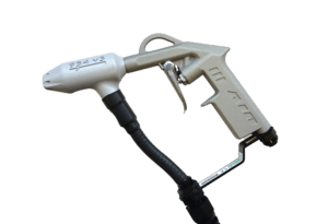 The nozzle uses compressed air and shares similarities to our 954v3 Ionising Gun but comes without a handle. Instead, it features a 1/4” BSP threaded fitting, which allows easy connection to any air supply.